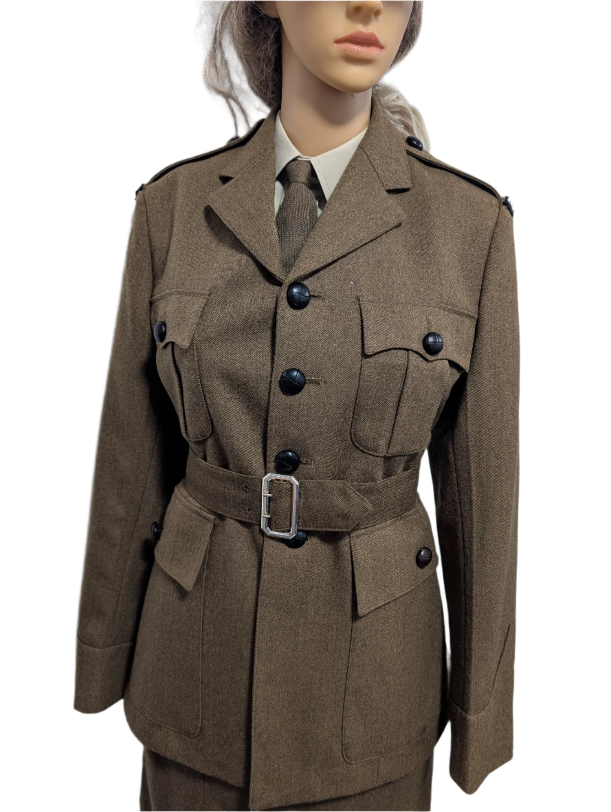 Our Reproduction made in the UK and made from Wool WW2 ENSA Uniform Entertainment National Service Association is a complete uniform that is perfect for collectors and reenactors alike. The uniform is designed to represent the female entertainer's who served their country during World War II. It is made in the United Kingdom and is an excellent addition to any militaria collection.
