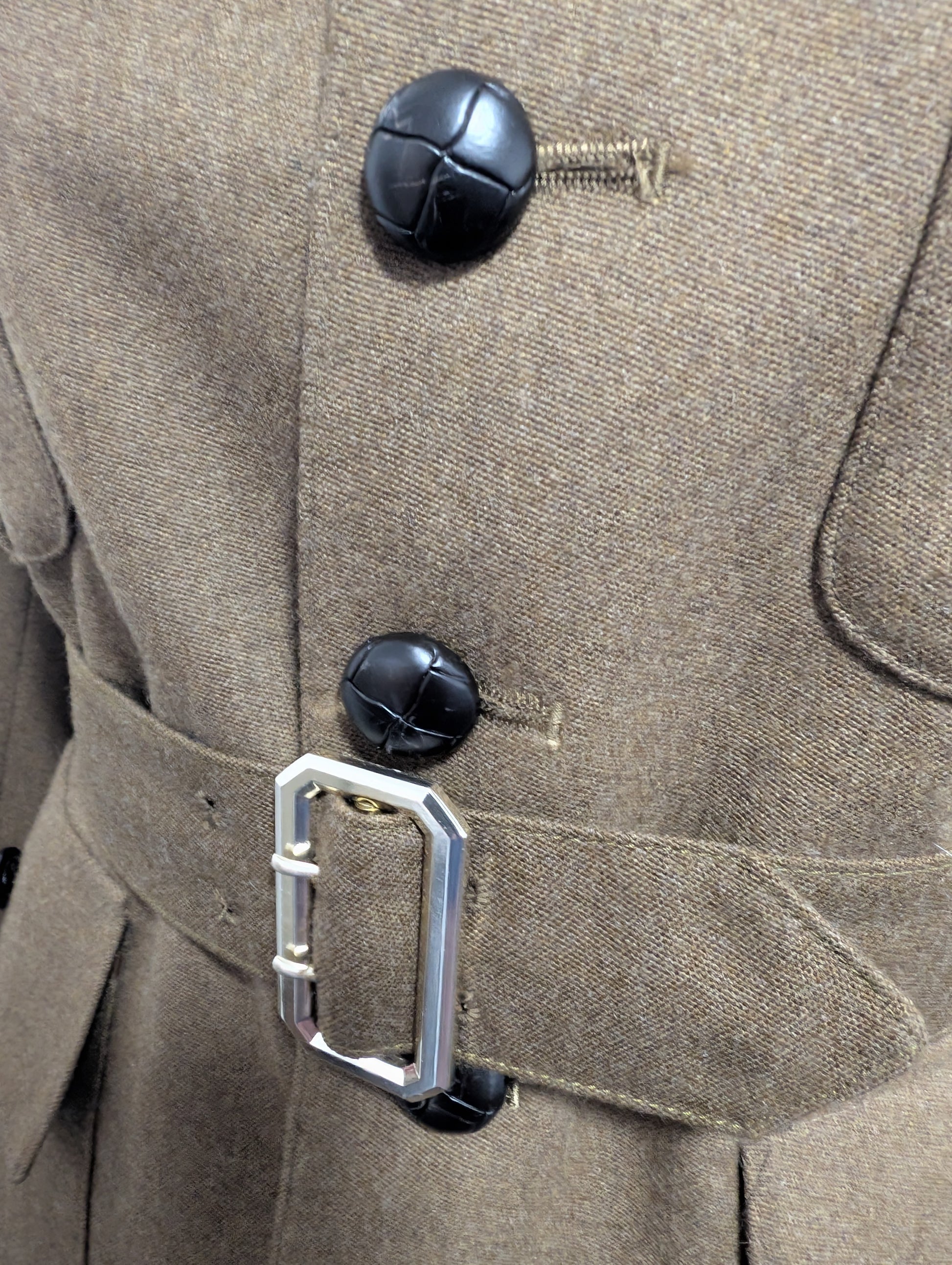 - Jacket made of Barathea Wool and fully lined with matching belt