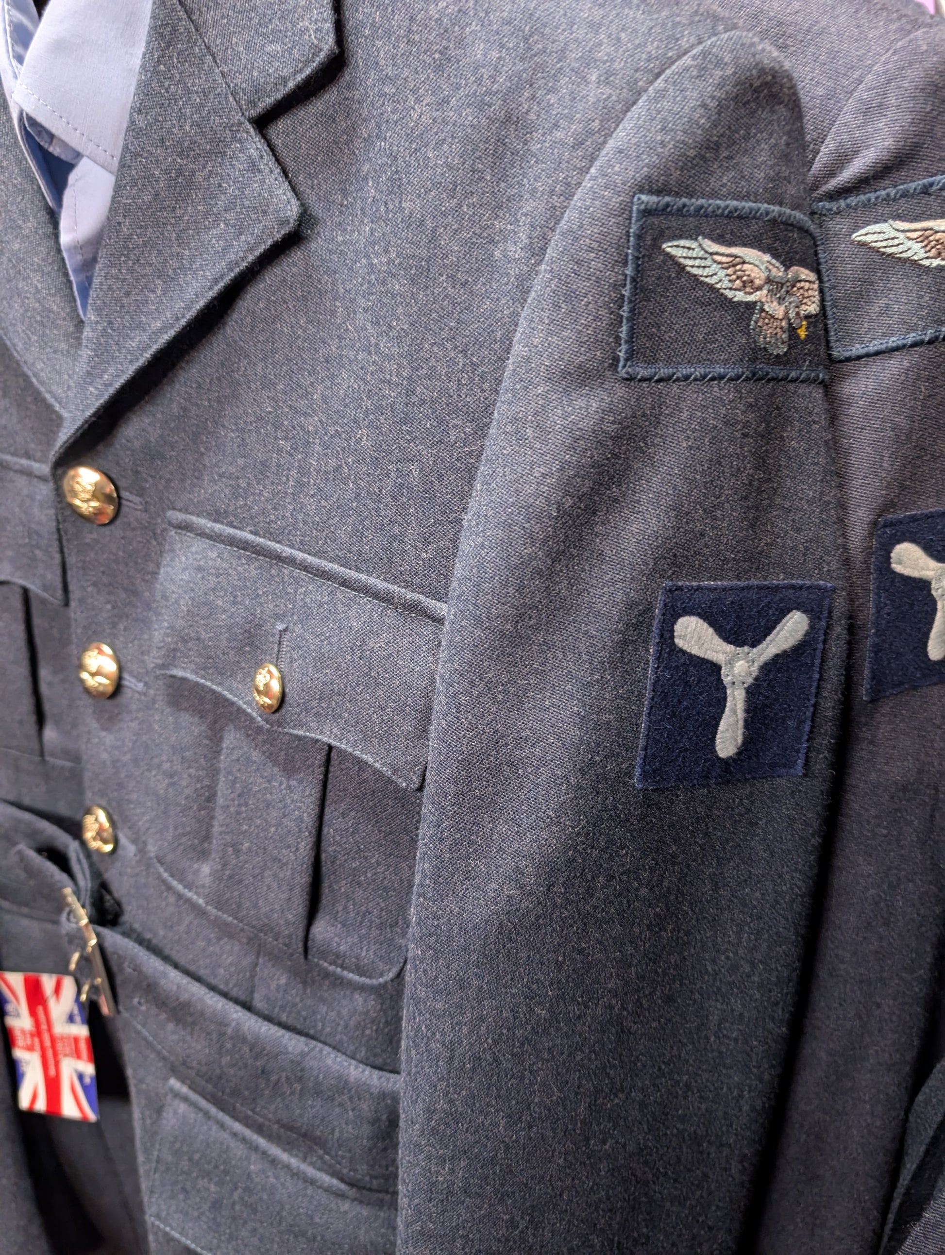 This RAF No1 Service Dress Uniform set, designed for a Senior Aircraftman (SAC), features a 40" chest short jacket with authentic EIIR RAF buttons, 34" short trousers, and a 56cm (small) peak cap. Each component is crafted to exact Royal Air Force standards, ensuring a sharp, professional appearance suitable for ceremonial events and official duties. The uniform is tailored for an optimal fit and comfort, preserving the distinguished and authoritative look emblematic of RAF personnel.